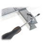 Fixing the tape: pass 30 cm of tape through the dowel and roll it up. The tape fixed in this way at one end of the clamp is tightened with the ratchet at the other end.