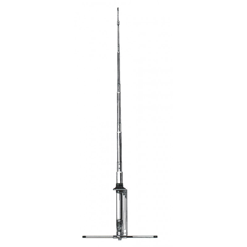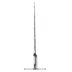 CB 27 MHz Base Antenna Ground Plane 5/8 type. Ground plane with three radials. Low radiation angle, special DX. Frequency range between 26.4 and 29 MHz. Bandwidth 1600 KHz, for a SWR> 2 (SWR @ res. freq < 1.3) Maximum recommended power 250W continuous AM-FM. 750W SSB. Coil with transparent cover. Withstands winds up to 130 km / h. Approximate weight 2.5 Kg. Made of 6063 T-832 aluminum. Compatible with masts from Ø 35 to 42 mm. Female PL connector (SO239). Gain 3.35 dBi. Radial length: 1.32 m. Total length: 5.95 m. Electrically shorted. Easy to assemble and adjust. Economical packaging, plastic bag.