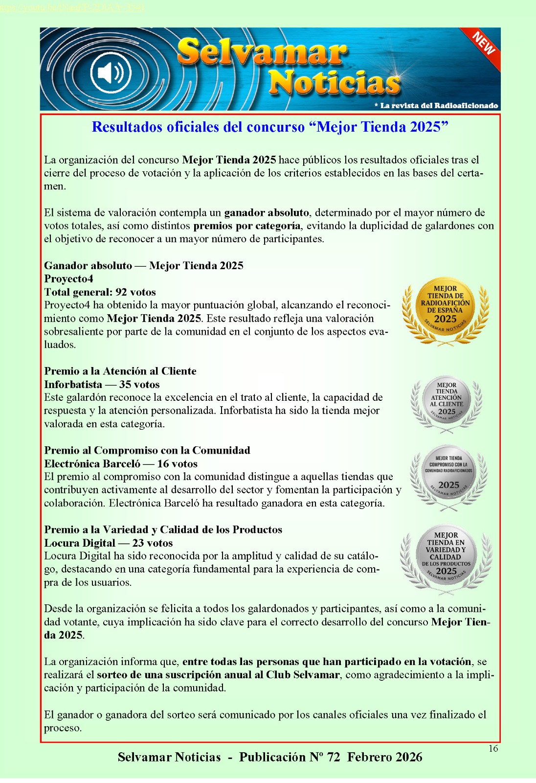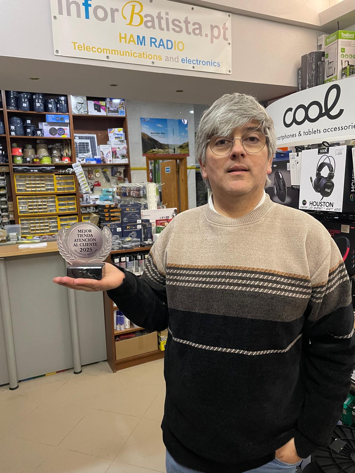 A InforBatista foi distinguida com o prémio “Mejor Tienda – Atención al Cliente 2025”, atribuído no âmbito do concurso organizado pela Selvamar Noticias, uma das publicações de referência na comunidade de radioamadores.